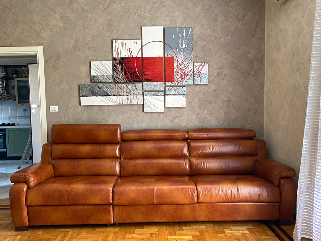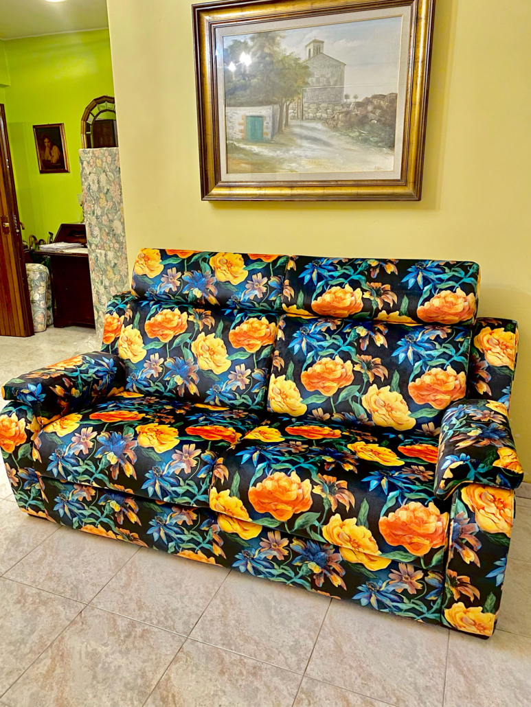 Rivestimento a scelta tra oltre 700 campionari diversi di stoffe, in più si può realizzare in ACQUACLEAN peer facilitare al massimo la pulizia in caso di bambini piccoli e animali domestici. Si può utilizzare anche finta pelle in PVC, ad impatto 0 sull’ambiente, vegan e vera pelle di qualsiasi tipo. Tutte le nostre stoffe sono rigorosamente MADE IN ITALY. Il divano si può realizzare completamente sfoderabile con un secondo rivestimento interno.