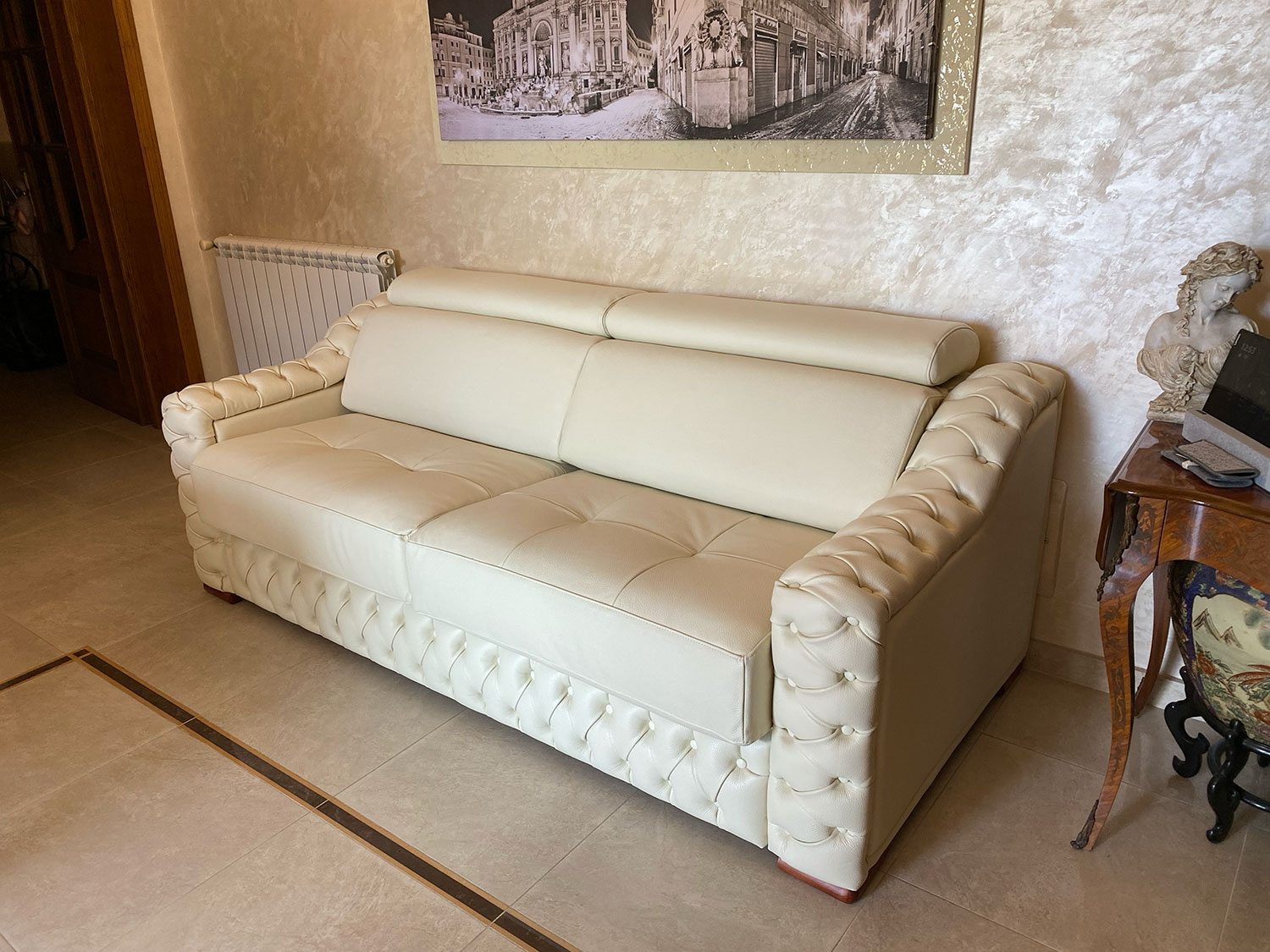 Rivestimento a scelta tra oltre 700 campionari diversi di stoffe, in più si può realizzare in ACQUACLEAN per facilitare al massimo la pulizia in caso di bambini piccoli e animali domestici. Si può utilizzare anche finta pelle in PVC, ad impatto 0 sull’ambiente, vegan e vera pelle di qualsiasi tipo. Tutte le nostre stoffe sono rigorosamente MADE IN ITALY. Il divano si può realizzare completamente sfoderabile con un secondo rivestimento interno.