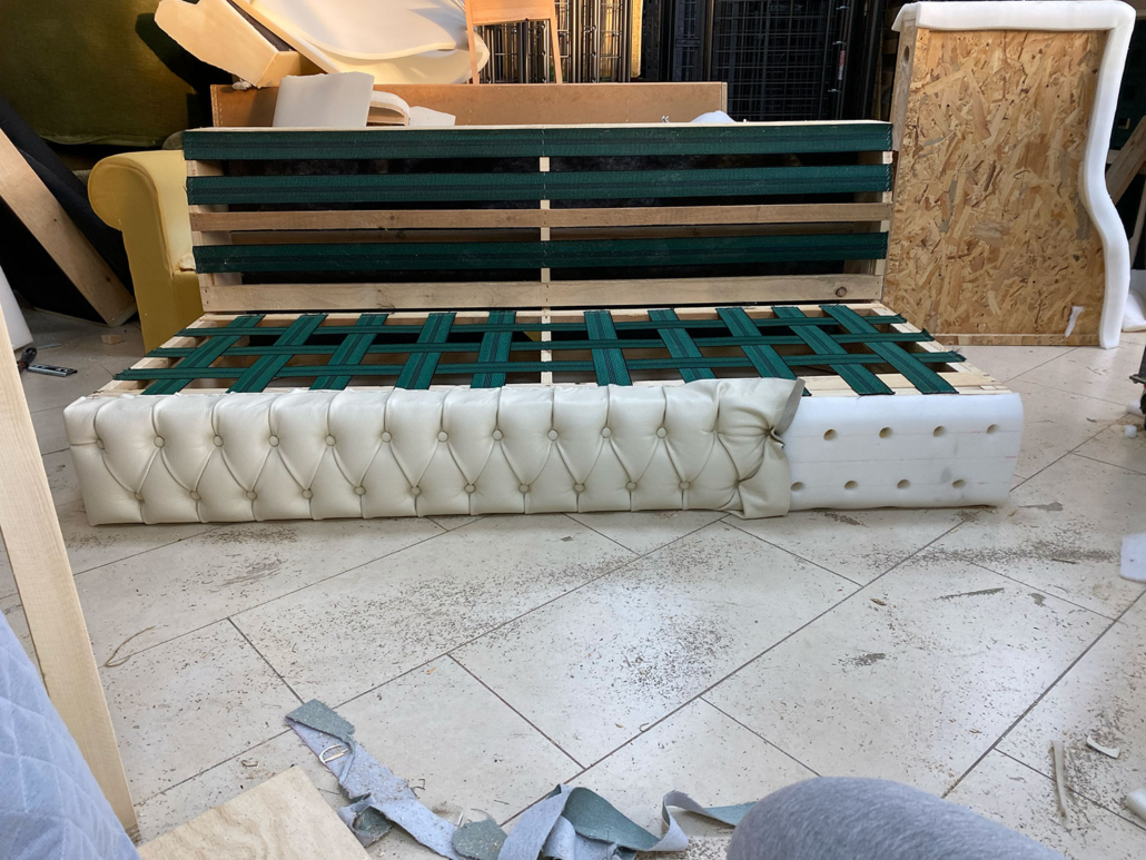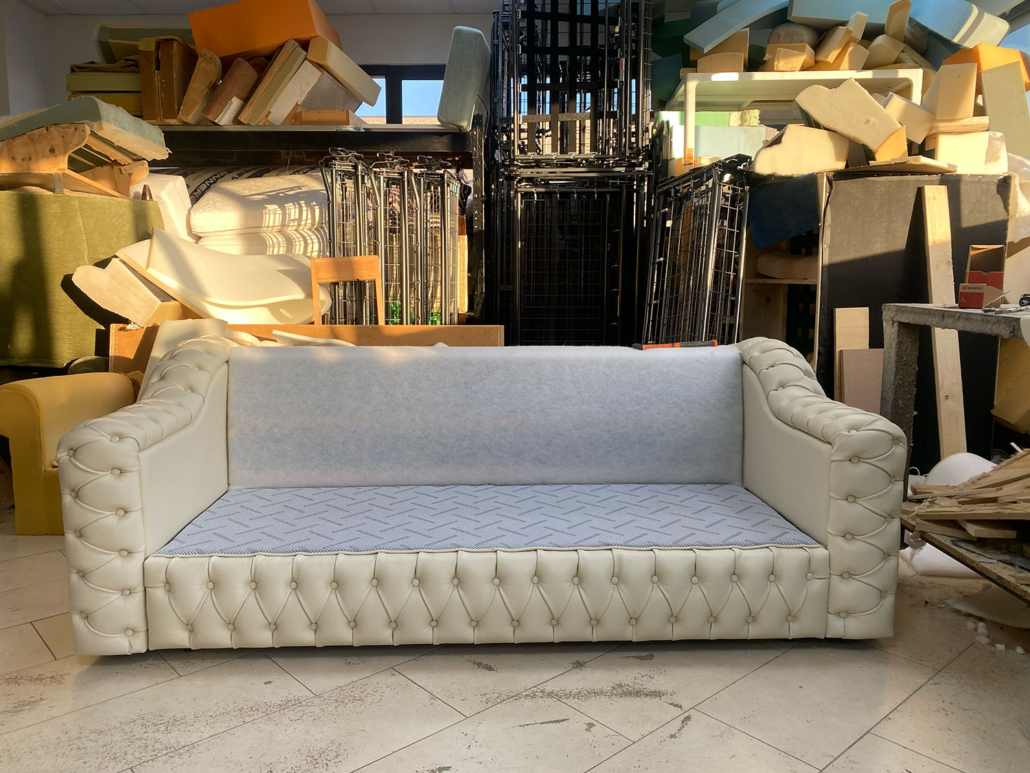 Cuscini seduta in poliuretano espanso indeformabile ad alta densità, dalla densità 35 alla 55, rivestito con fibra di poliestere tecnoform 600 gr, e fodera in cotone 100%.