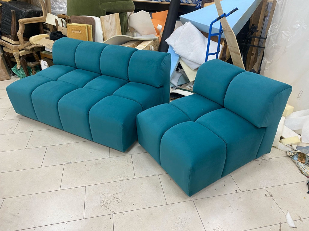 Cuscini seduta in poliuretano espanso indeformabile ad alta densità, dalla densità 35 alla 55, rivestito con fibra di poliestere tecnoform 600 gr, e fodera in cotone 100%.