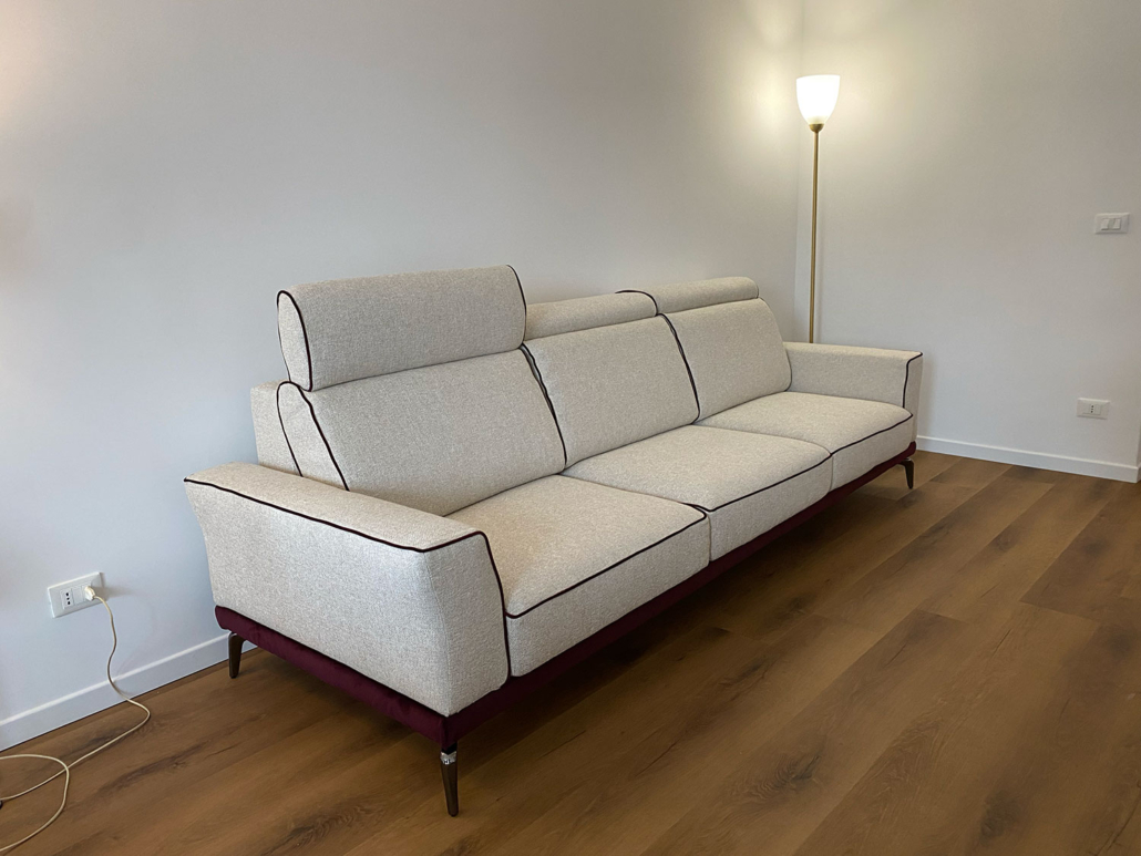 Rivestimento a scelta tra oltre 700 campionari diversi di stoffe, in più si può realizzare in ACQUACLEAN peer facilitare al massimo la pulizia in caso di bambini piccoli e animali domestici. Si può utilizzare anche finta pelle in PVC, ad impatto 0 sull’ambiente, vegan e vera pelle di qualsiasi tipo. Tutte le nostre stoffe sono rigorosamente MADE IN ITALY. Il divano si può realizzare completamente sfoderabile con un secondo rivestimento interno.