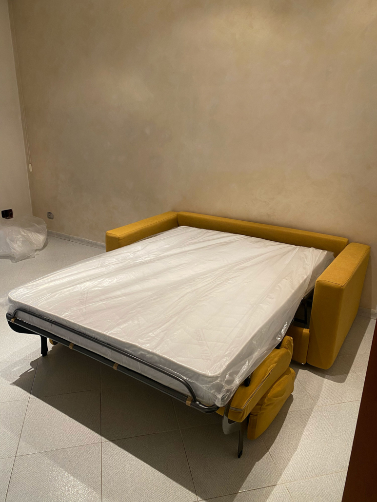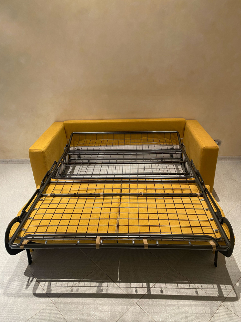Meccanismo relax. L’intero meccanismo è verniciato con polveri epossidiche esenti da solventi e componenti nocivi, l’apertura del meccanismo è azionata elettricamente tramite pulsantiera, si possono decidere diverse pulsantiere, anche touch-screen con USB. Nel caso in cui il divano dovesse essere posizionato al centro della sala, si potrà installare una batteria al litio. I divani sono tutti raso-muro, quindi non dovranno essere staccati dal muro.